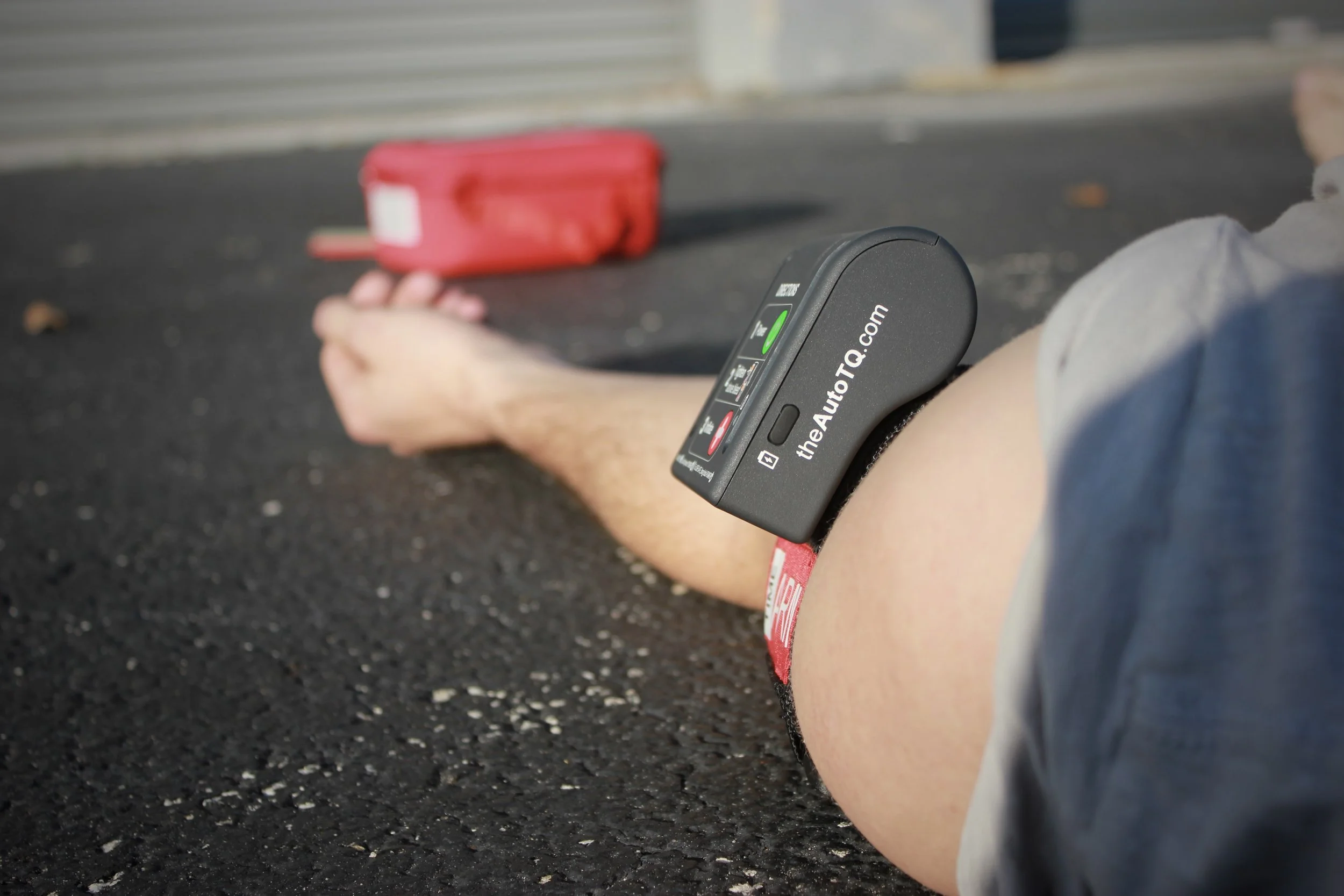 AutoTQ is a patented, FDA-registered tourniquet that makes bleeding control simple with two steps: tighten and inflate. This device uses air pressure and voice prompts to stop bleeding quickly.